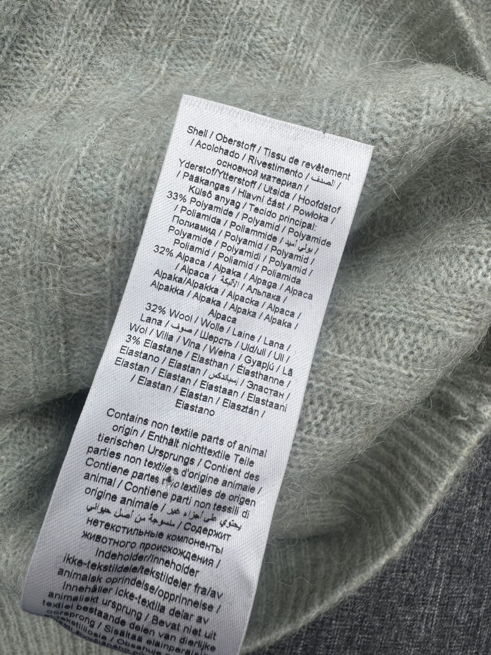 Skład 33% poliamid, 32% alpaka, 32% wełna, 3% elastan
